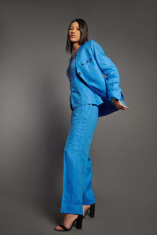 Cobalt Blue linen blazer jacket