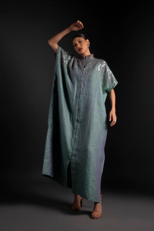 Embroidered linen full length kaftan
