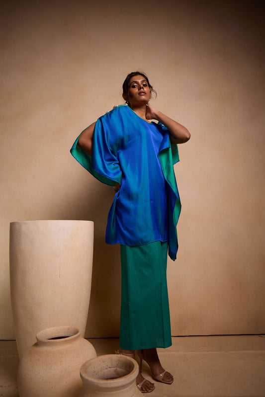 Silk short kaftan with pants