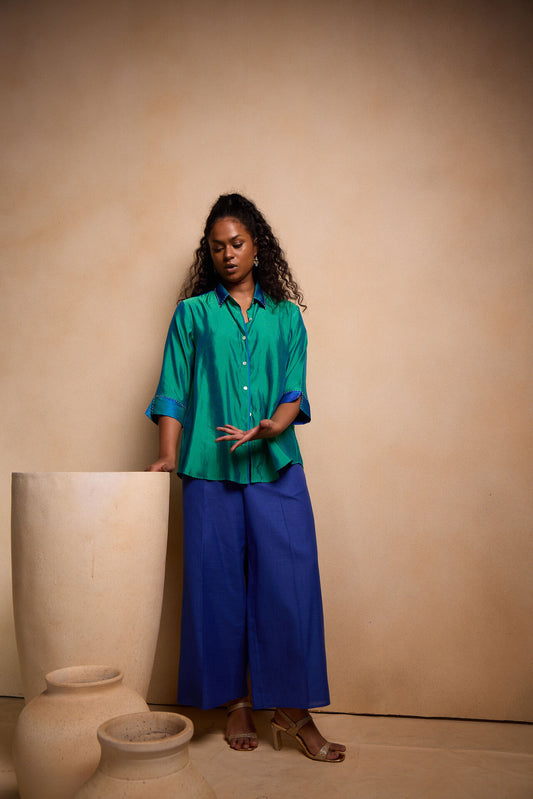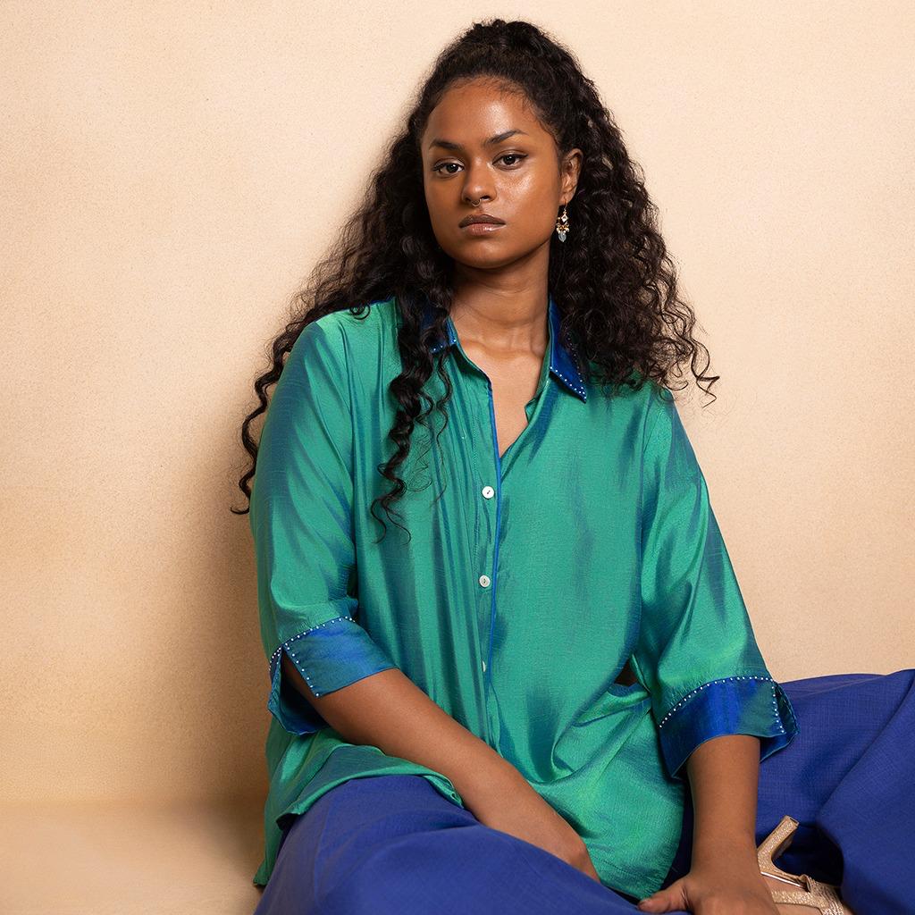 Silk shirt with peals and pants