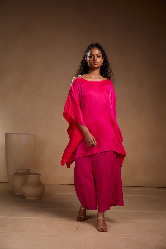 Silk mid-kaftan with big pearl and pant