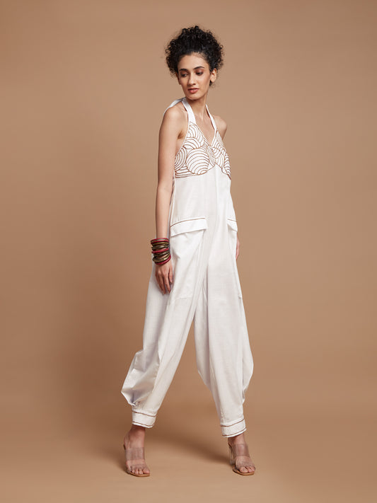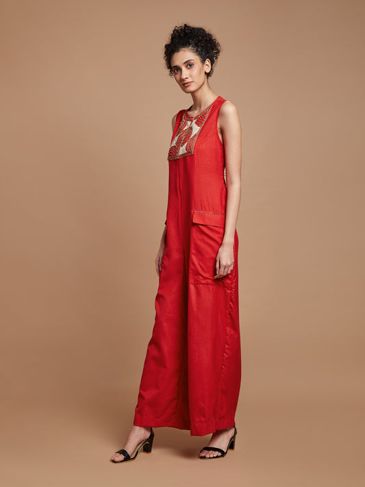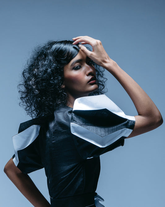 Black Jumpsuit With Handcrafted Geometric Sleeves