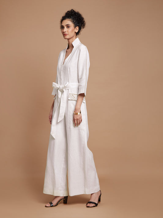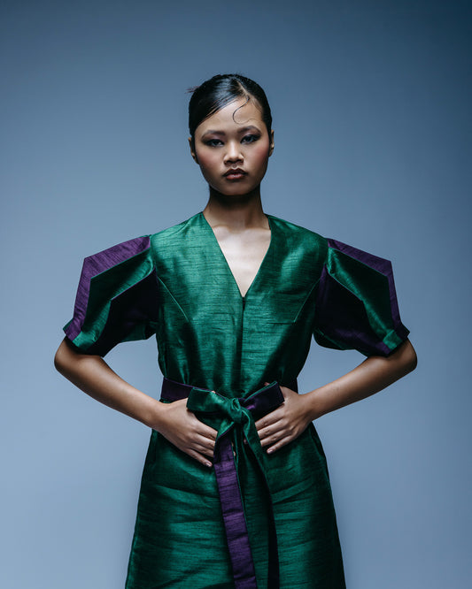 Green Jumpsuit With Handcrafted Geometric Sleeves