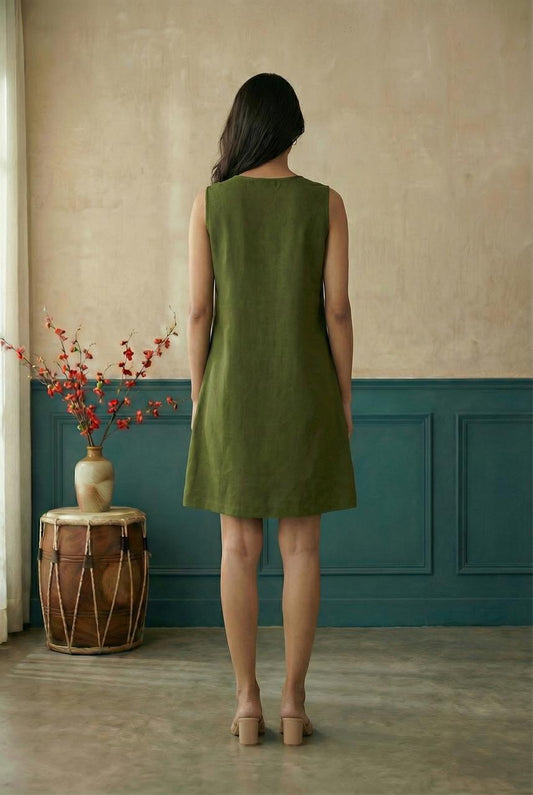 Olive Sleeveless A-Line Dress