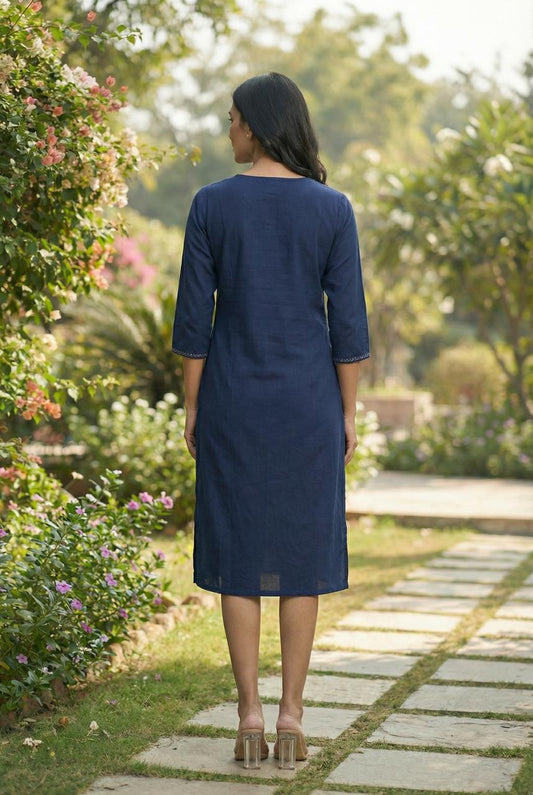 Women A-Line Below-Knee Cotton Blend Hand-Painted Dress