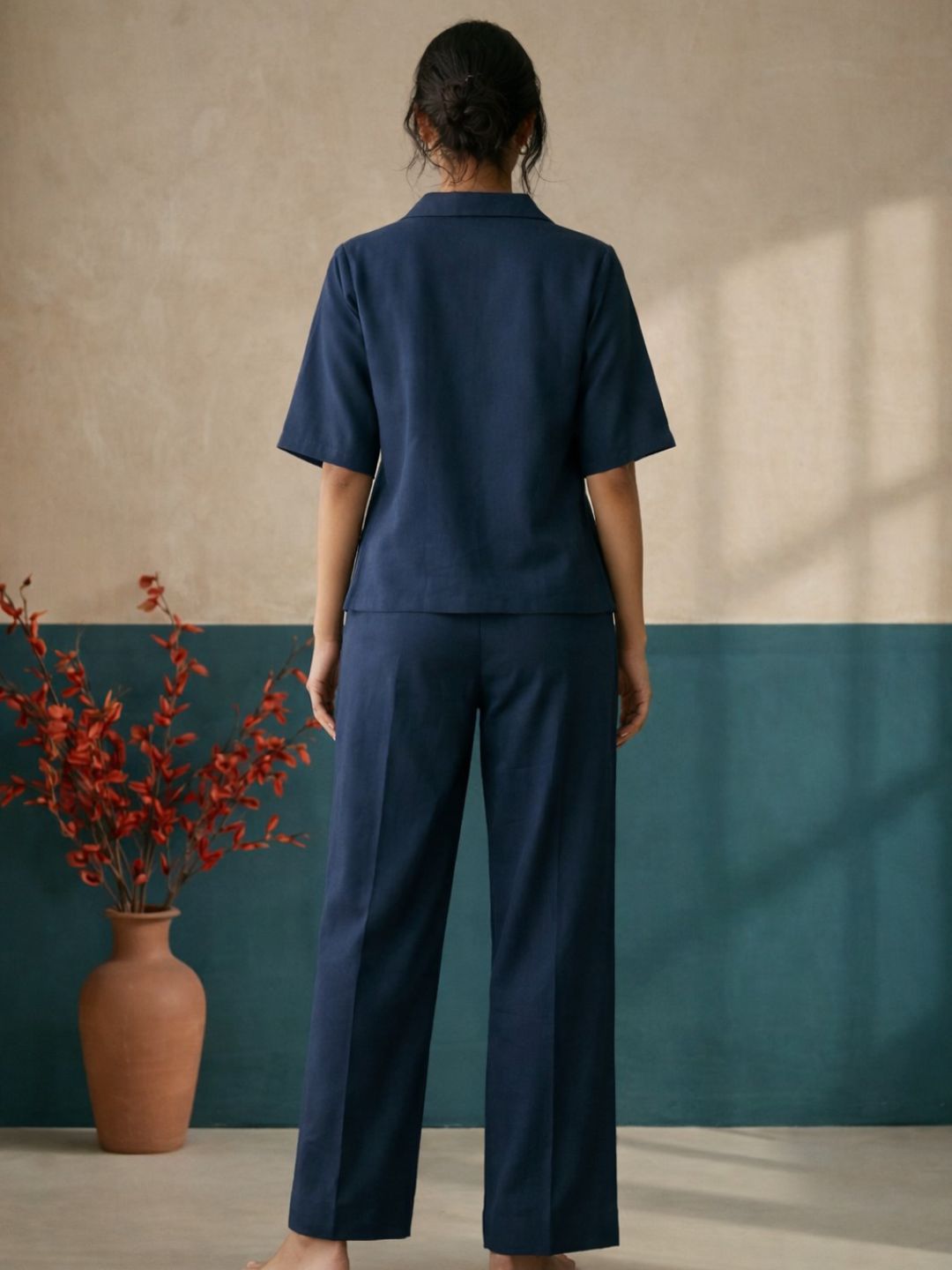 This verstile top is made of cotton blend fabrics which is extremly comfortable on your skin.top with collar, handpainted